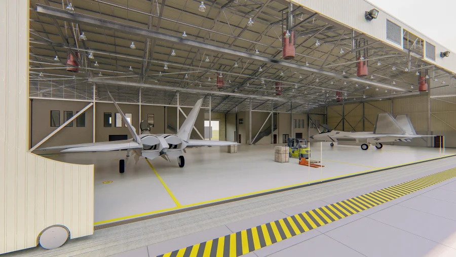 The intent of the both of the projects is to provide design for the renovation of existing Hangars No 4 and 5, to include the construction of two separate blocks to house new maintenance shops and offices in order to meet the current requirements of the user and to install new hangar doors and tracks, new HVAC, new electrical distribution, fire alarm and LPS systems, new deluge fire suppression system. Necessary connections will be made to the existing fire water storage tank and transformer substation. All existing slab on grade surfaces, and exterior pavements that will be damaged during the construction works shall be repaired as required. For this purpose, all required Civil, Architectural, Mechanical, and Electrical Engineering services are conducted to accomplish the work. The whole design has been based on the requirements of latest UFC 4-211-01.